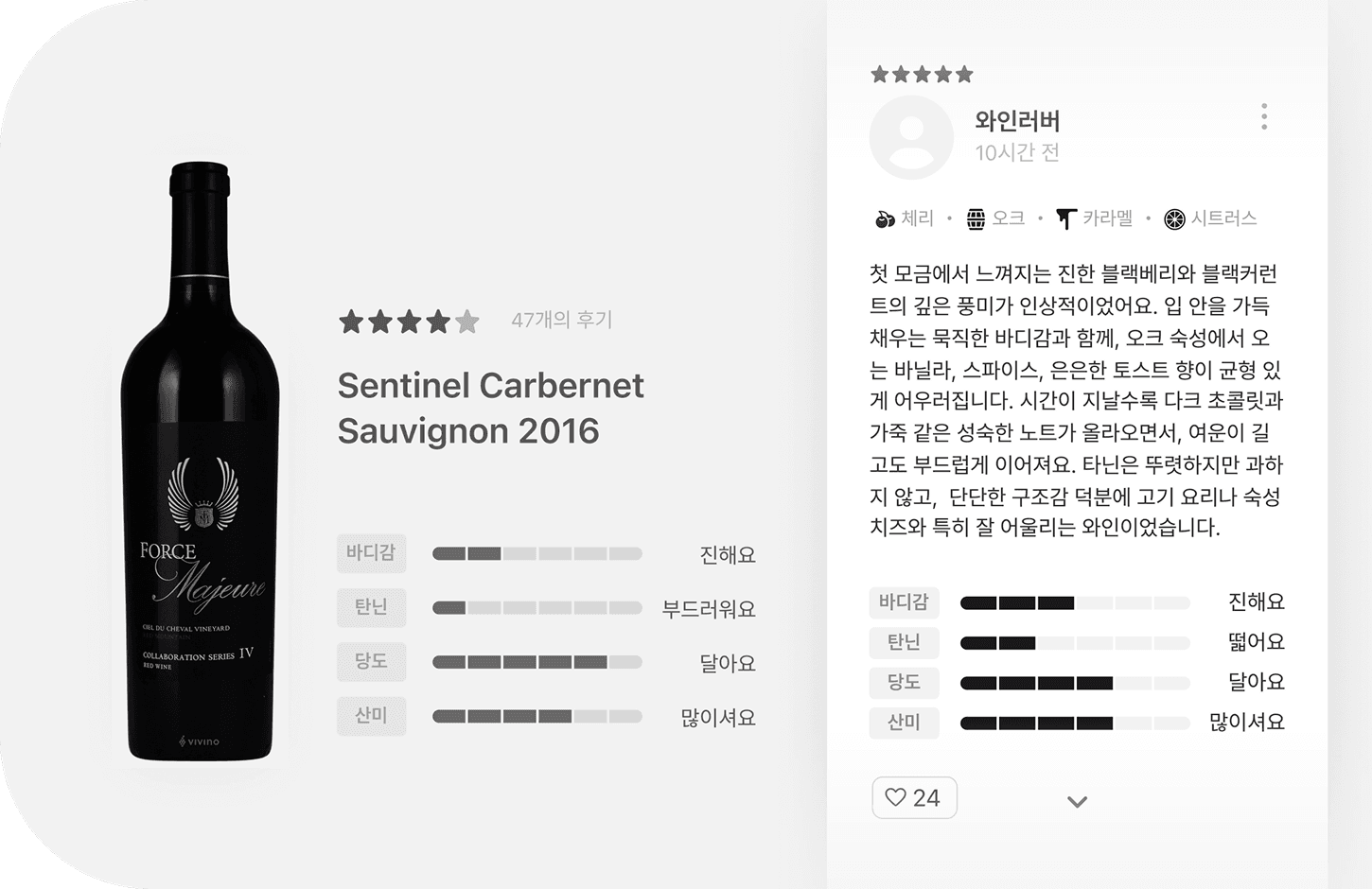 더 구체화된 리뷰 시스템으로쉽고 빠르게 와인 리뷰를 살펴보세요.